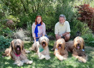 Ich bin Navajo und wurde "Western" geritten Wir sind nach über 35 Jahren in Bayern wieder nach Württemberg zurückgekehrt. Hilu's Elternhaus haben wir saniert und fühlen uns sehr wohl. Das Rudel fühlte sich sofort heimisch und nutzen den Garten zum ausgiebigen Spiel. Unsere 2. Hündin war ein Briard aus der Zucht von du Jardin des Colombières und wurde fast 15 Jahre alt - leider konnte mit ihr nicht gezüchtet werden. Unsere 3. Hündin Kâbisha liebevoll "Bishi" genannt wurde 13 Jahre alt. Sie hatte immerihr Rudel fest im Griff und war der ruhende Pol in unserer Familie. Zuerst war kein direkter Gedanke an Ausstellung oder Zucht, doch da unsere Bishi einen wundervollen Charakter hat und wir deshalb noch eine zweite Hündin zu unseren Rudel dazugesellen möchten, entschlossen wir uns doch dazu. Bayuma ist stolze Mutter unseres C-, D- und E-Wurfes, ja und wie das so ist - gesellte sich diesmal ein Rüde - Chigaami in das Rudel. Als "Jungspund" wurde er von den "Oma, Tante, Mama" erzogen. Eshaani wird unsere Zuchtlinie fortführen und unseren F-Wurf erziehen. Im Hundesportverein - Vaterstetten, arbeitete ich mit Kabishâ, Abbanice, Bayuma und Chigaami